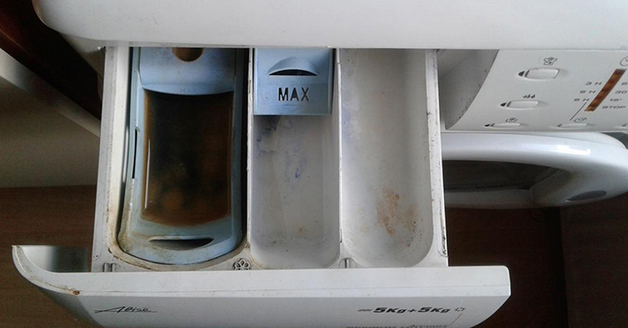 Вытащите лоток, согласно инструкции вашей модели машинки. С помощь любого чистящего средства избавьтесь от всех загрязнений и отложений порошка. Протирать отсек надо до полной чистоты.