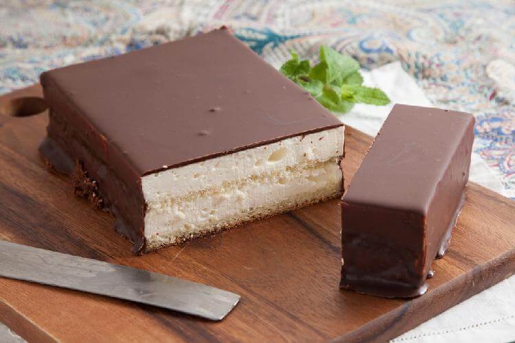 - Всыпаем ванилин. В белковую массу осторожно добавляем взбитое масло со сгущенкой. Суфлейная масса готова. На дно формы выкладываем один корж заливаем половину суфле, выкладываем второй корж и снова льем суфле. Делаем это быстро, т.к. суфле с агаром застывает на глазах. Отправляем в холодильник. Суфле застыло-заливаем глазурью (растапливаем шоколад, смешиваем со сливочным маслом и глазурь готова). Снова в холодильник. Глазурь застыла. Торт готов.