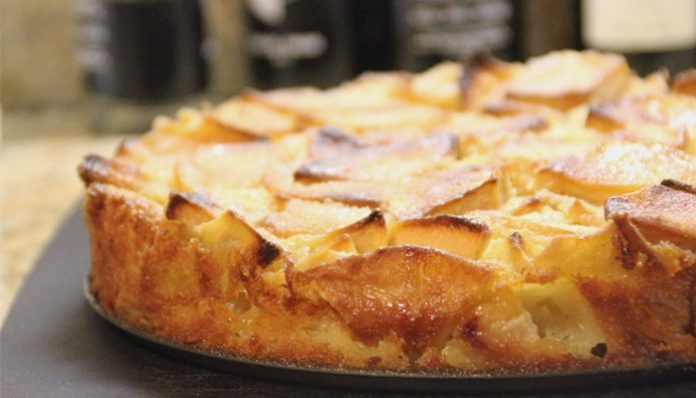 Вливаем яблочную смесь в форму с коржом и убираем в холодильник на несколько часов.