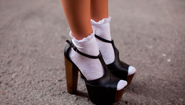 Белые носочки смотрятся очень эстетично. Но многие предпочитают покупать носки менее капризной расцветки, на которой не видно небольших загрязнений.
