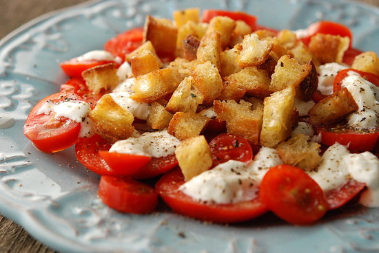 Помидор порезать соломкой, сырок натереть на терке, зелень и чеснок измельчить, добавить сухарики и перемешать. Заправить майонезом.