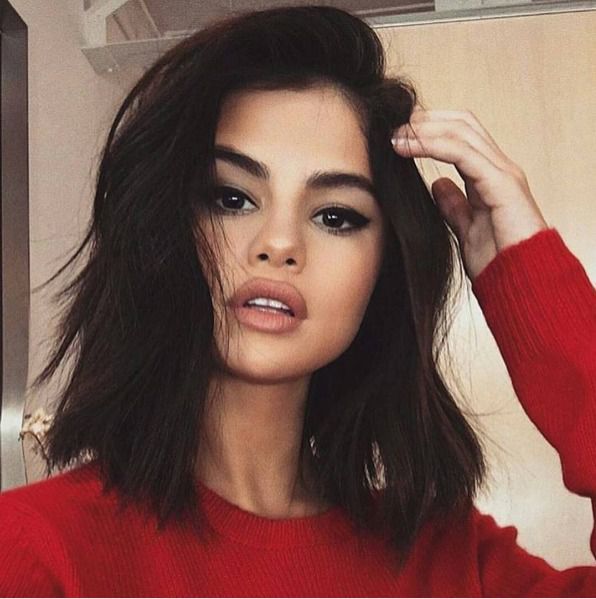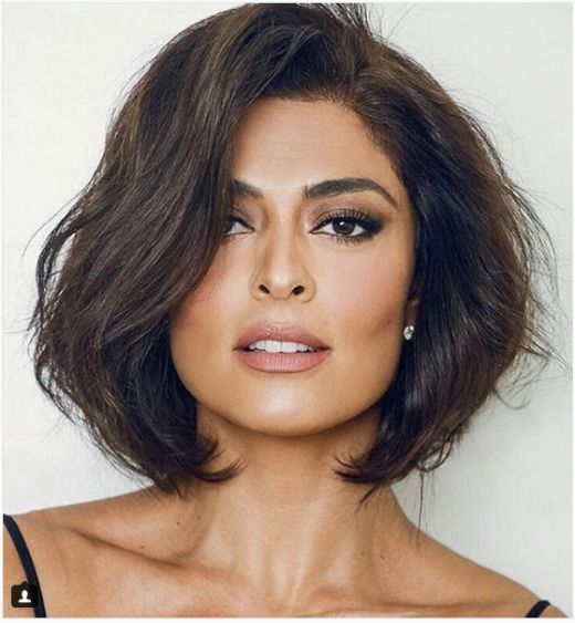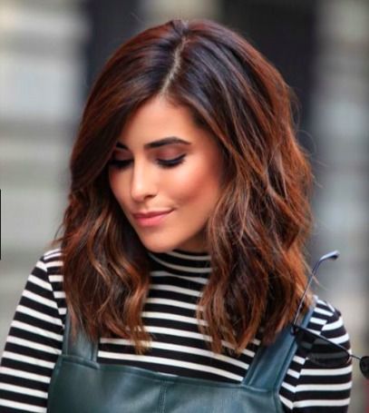 Небрежная прическа для средней длины волос хороша в любом возрасте, но насыщенный темный оттенок волос лучше идет молодым.